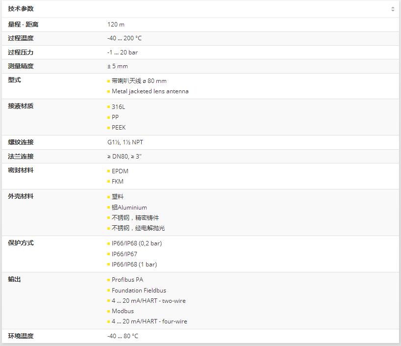 VEGAPULS 69是一種用于在不同工藝條件下連續(xù)測量散裝固體的傳感器。它是非常高的筒倉、大型燃料庫和分段容器中水平測量的理想選擇。由于非常好的信號聚焦,簡單的設(shè)置和可靠的測量得到了保證。VEGAPULS 69可以配備封裝塑料天線或集成在金屬法蘭中的透鏡天線。這使得能夠佳地適應(yīng)不同的應(yīng)用領(lǐng)域。困難的過程條件,如:的溫度、過壓或真空,對于物位計(jì)VEGAPULS 692來說完全不是問題:準(zhǔn)確可靠地測量儲罐和過程容器內(nèi)的物位。借助雷達(dá)技術(shù)物位計(jì)非接觸測量液體物位并連續(xù)提供高精度測量值。