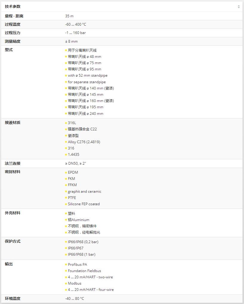VEGAPULS 66雷達(dá)傳感器用于惡劣過(guò)程條件下液體的持續(xù)性物位測(cè)量。 適于在儲(chǔ)藏和過(guò)程容器以及豎管使用。 VEGAPULS 66雷達(dá)傳感器有不同天線種類,應(yīng)用廣泛。