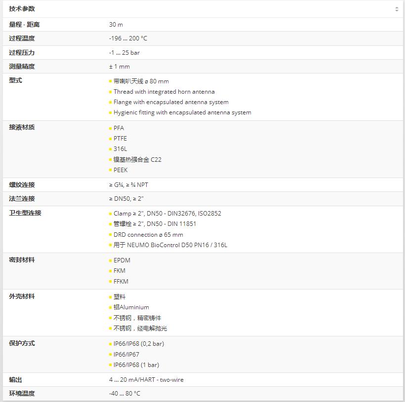 VEGAPULS 64是一種用于連續(xù)測(cè)量液體液位的傳感器。對(duì)于小型儲(chǔ)罐或狹窄空間,小型工藝配件具有特殊優(yōu)勢(shì)。非常好的信號(hào)聚焦使其能夠在許多設(shè)備(如攪拌器和加熱螺旋管)的容器中使用。測(cè)量度高,不受過程條件影響